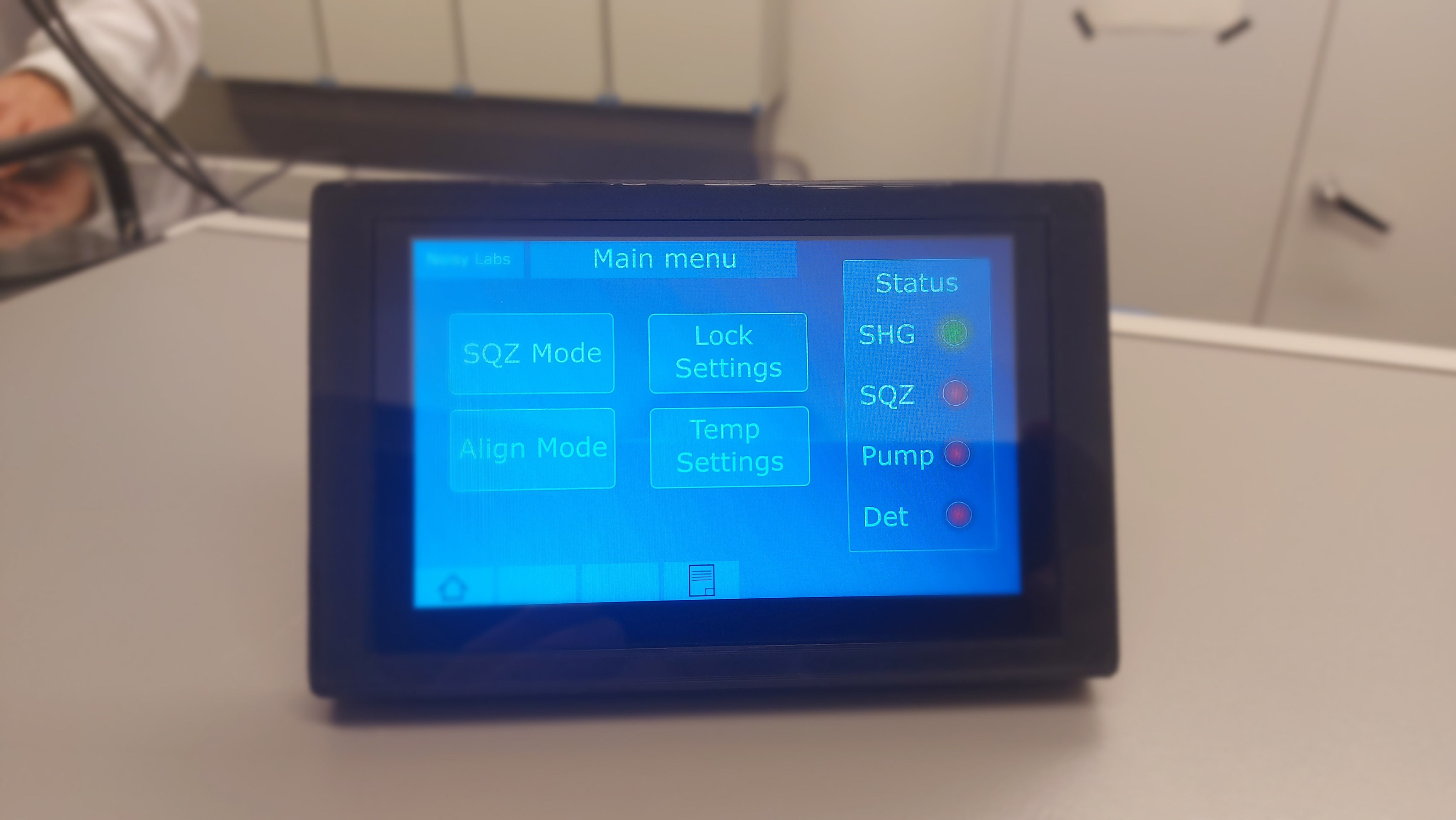 Use a touchscreen to control the Squeeze Laser, switch between the alignment mode and the squeezing mode. It also provides options to fine-tune operational settings (e.g. phase-matching temperature).